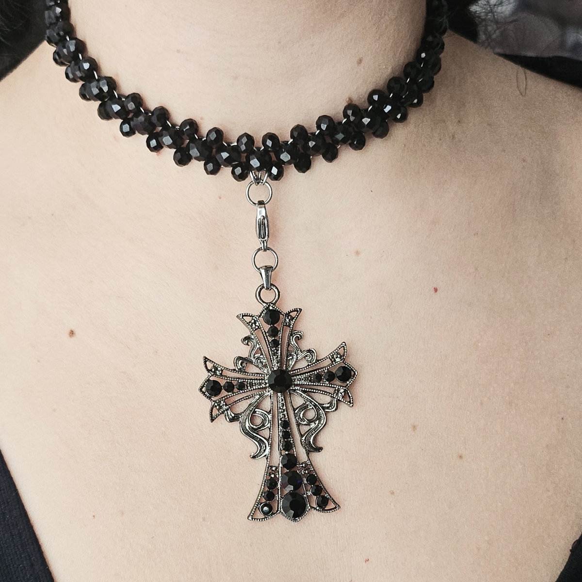 - Dije desmontable: Dije de cruz de aleación de metales (cuidar de agua, alcohol y perfumes). Es desmontable, por lo que podes usar el choker con y sin el dije, además podés sumarlo a otros accesorios!