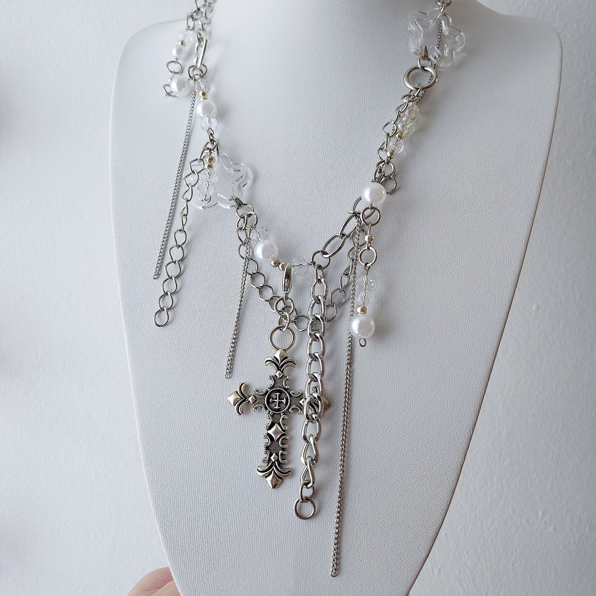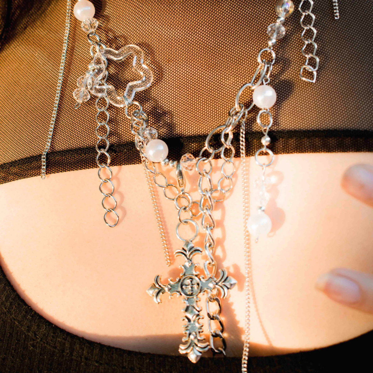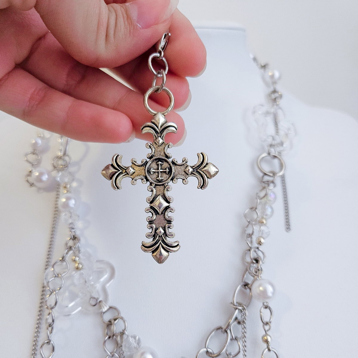 Incluye un charm de cruz que es desmontable, es decir, podes sacarlo y usarlo en otros accesorios como charm. La delicadeza está en los detalles; tiene un cierre con mosquetón en forma de corazón que eleva cualquier outfit ⋆⁺₊✧