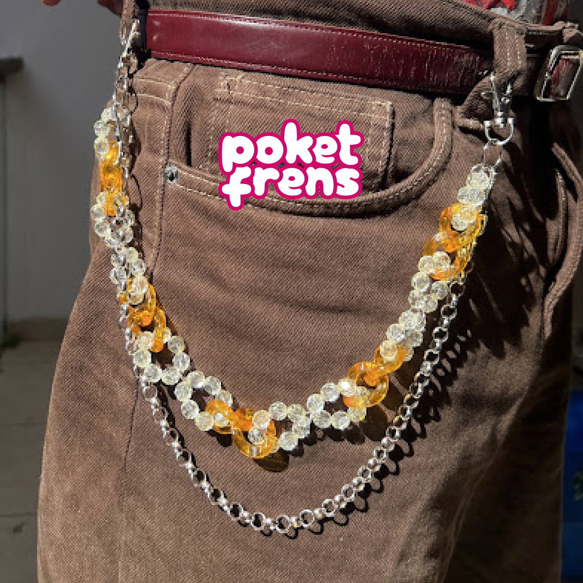 El versa set es un accesorio que incluye dos cadenas independientes, una colorida y otra de hierro, podes usarlas juntas, por separado, como collar, en tu pantalón, o bolso, 100% versatil y se adapta a cualquier outfit
