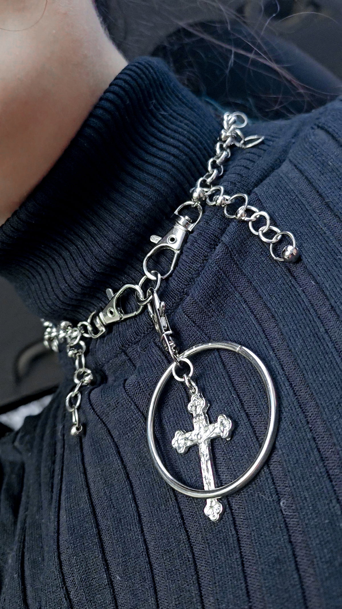 El charm de cruz tiene su gancho independentiente, lo podes usar en ropa y otros accesorios ִֶָ𓂃 ࣪˖ ִֶָ🐇་༘࿐