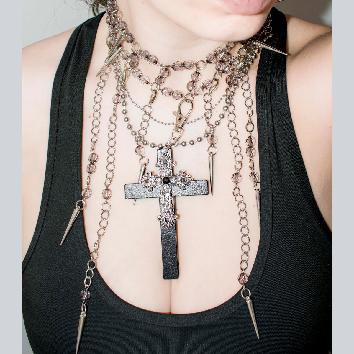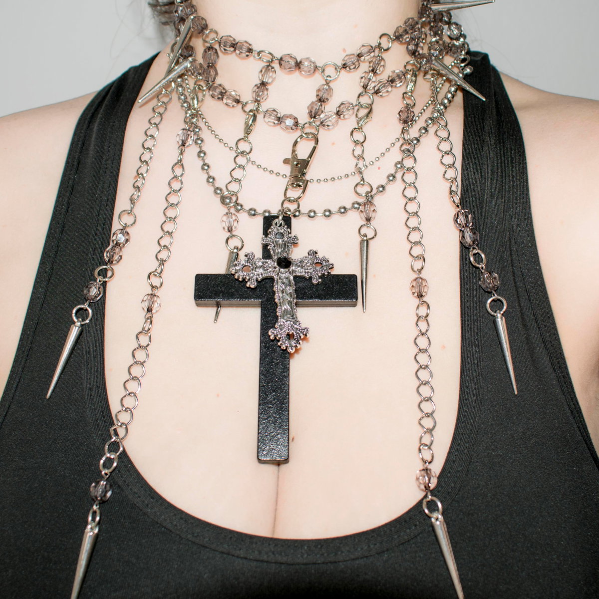 Todas las tiras que cuelgan del collar se pueden sacar, dejando una gargantilla un poco más simple para otras ocasiones <3 Además podés cambiarlas de lugar!