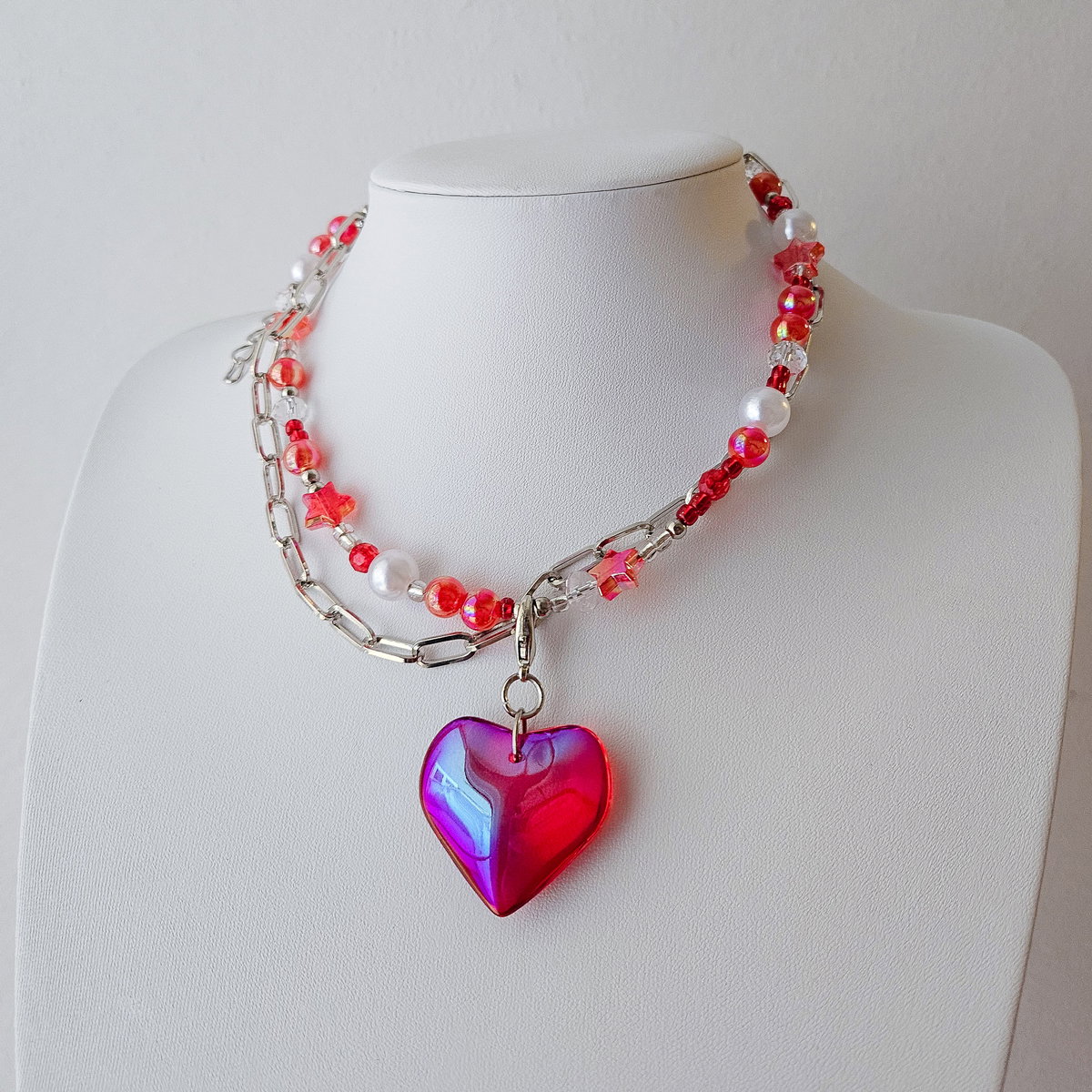 Con un dije de corazón desmontable, dejando una cadena más sutil para otras ocasiones, y posibilidad de usar el dije en otras cadenas que ya tengas ✮ ⋆ ˚。