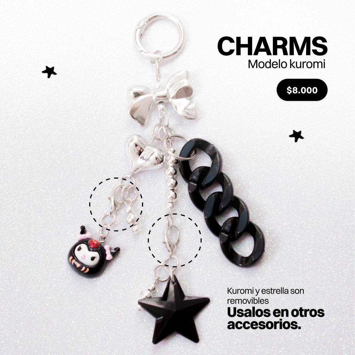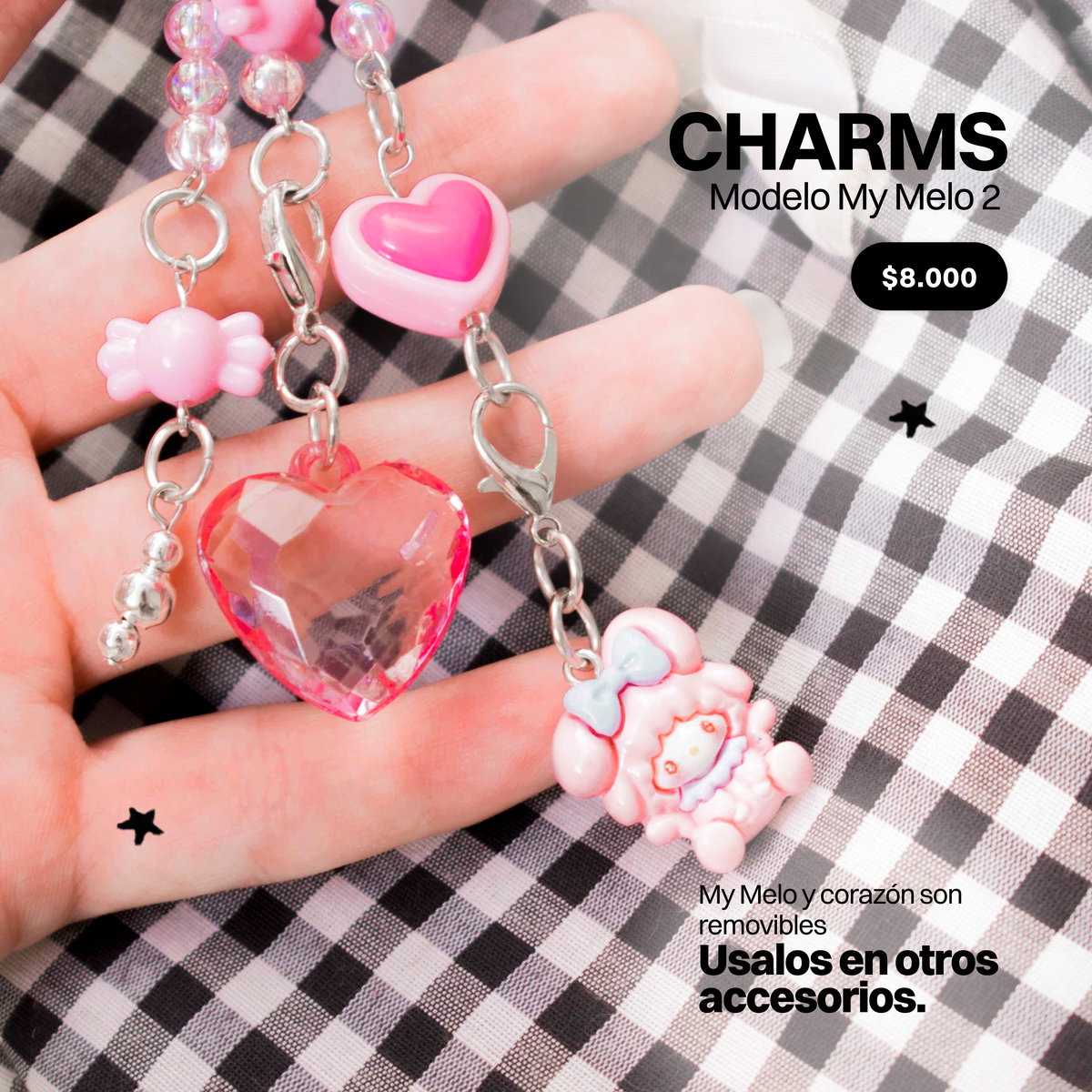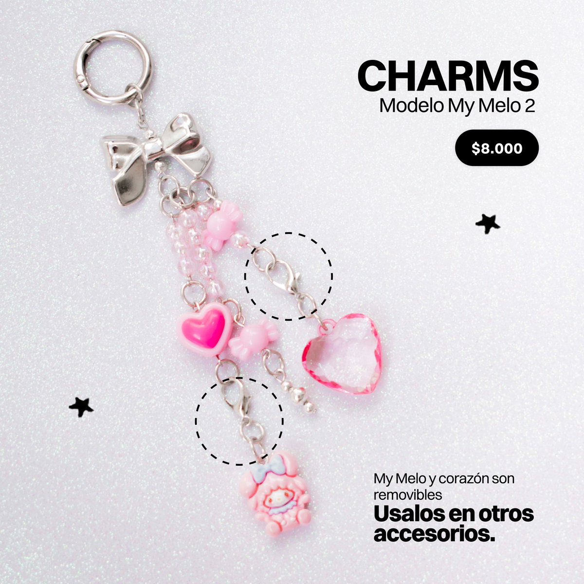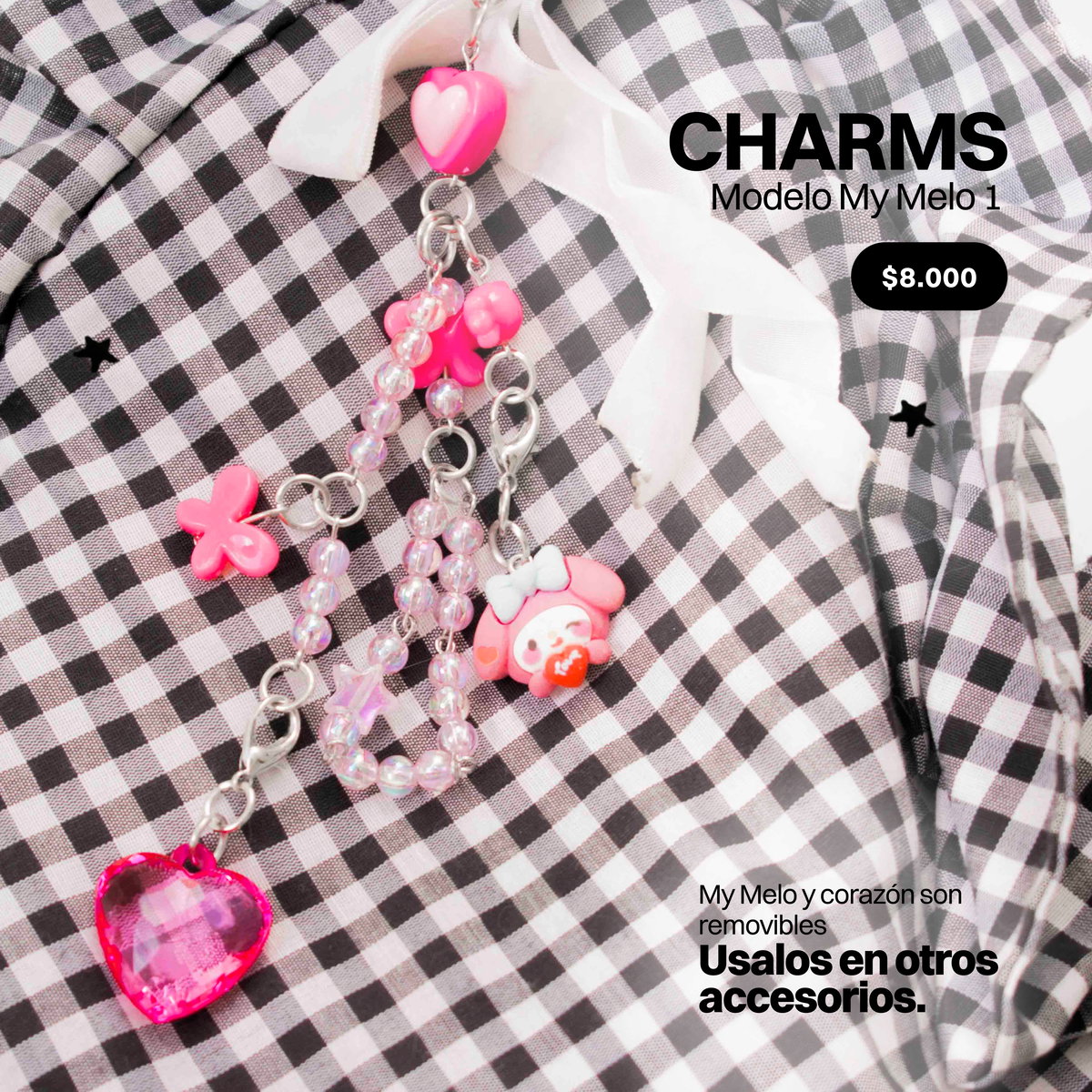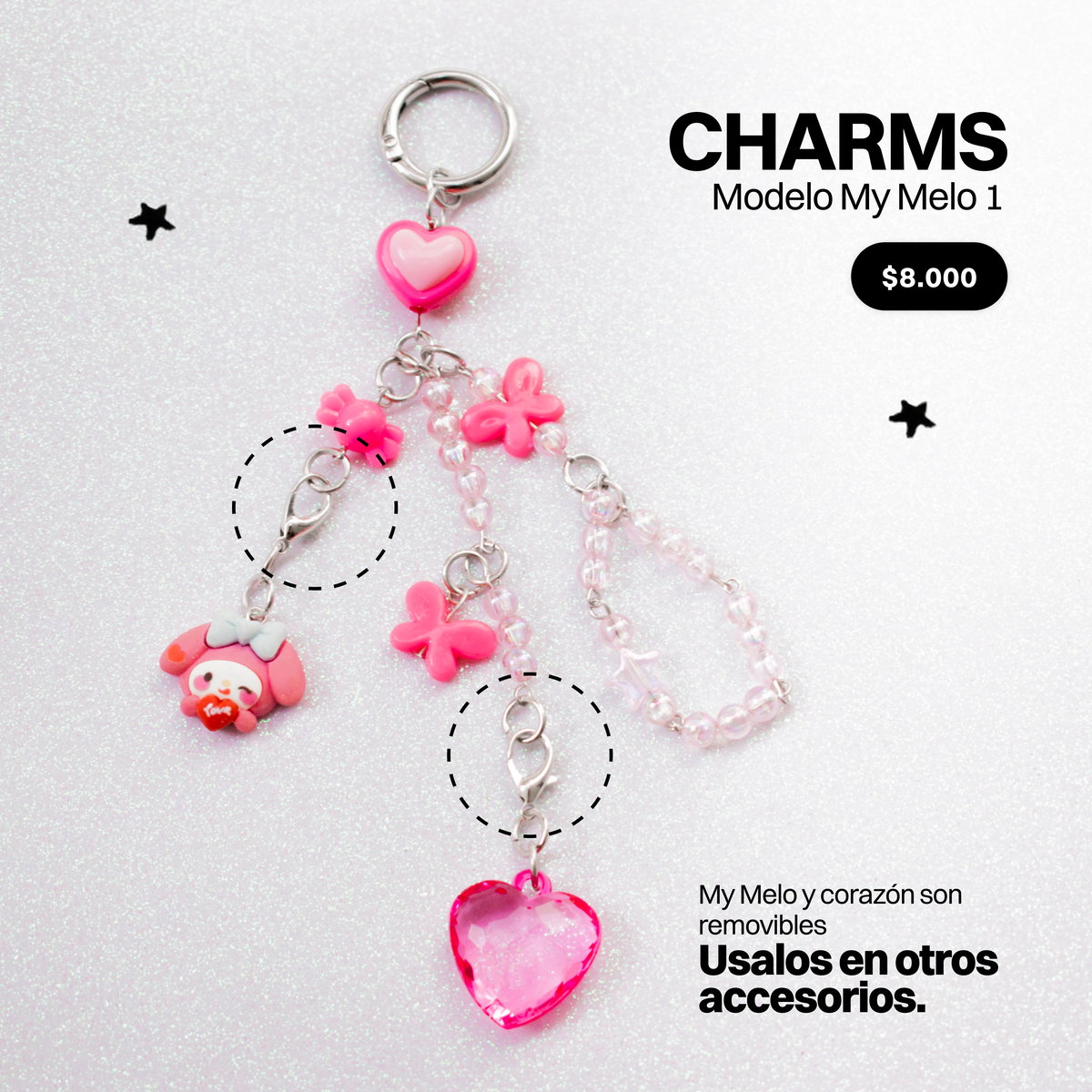Estos mini charms podés sumarlos a otros accesorios que ya tengas, por ejemplo, a collares, cadenas, al strap de tu celu, cordones, ropa, bolsos, y hasta donde tu creatividad te lleve ♡